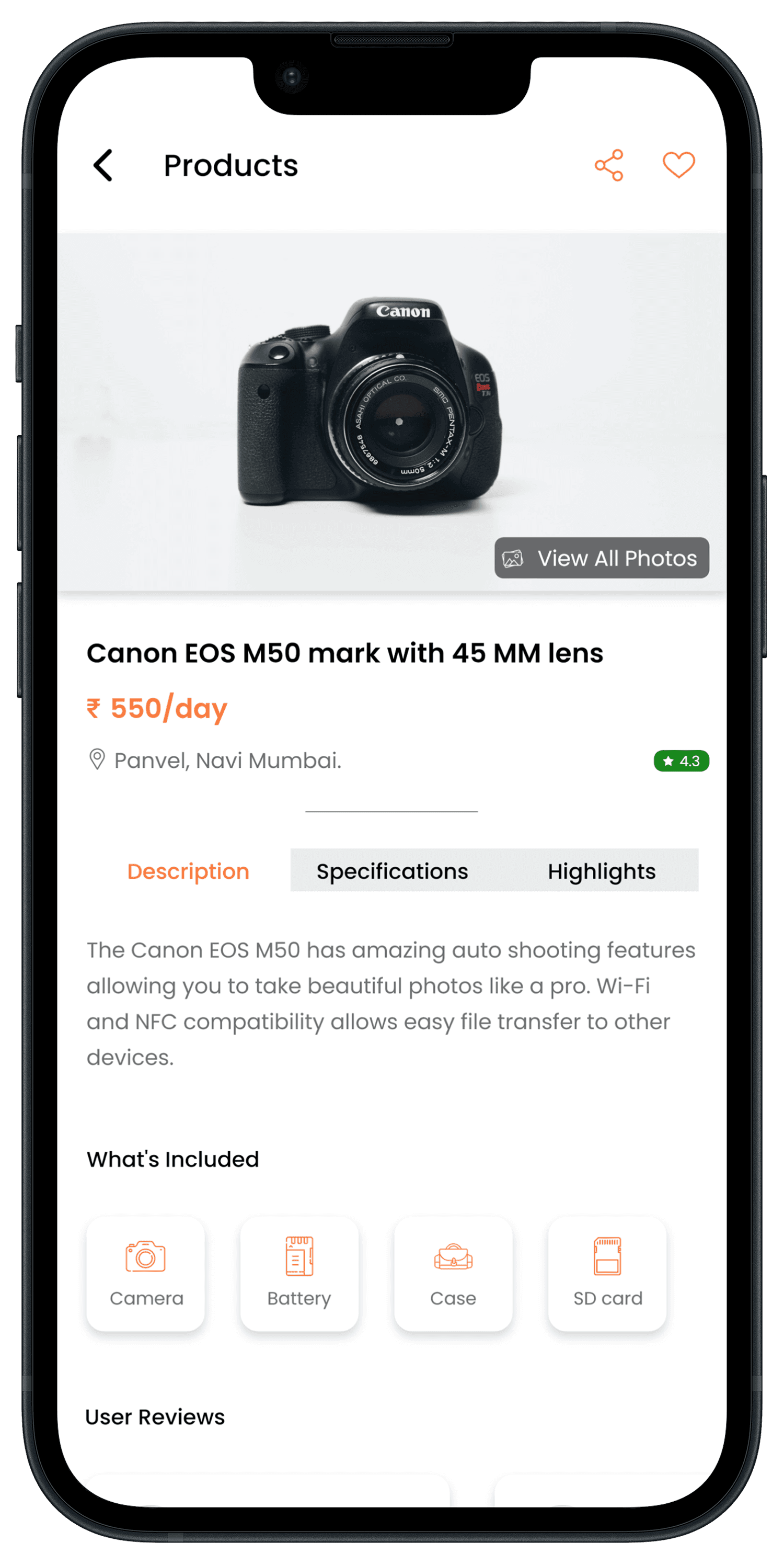 - A secure platform facilitating both the renting out and renting of camera accessories.